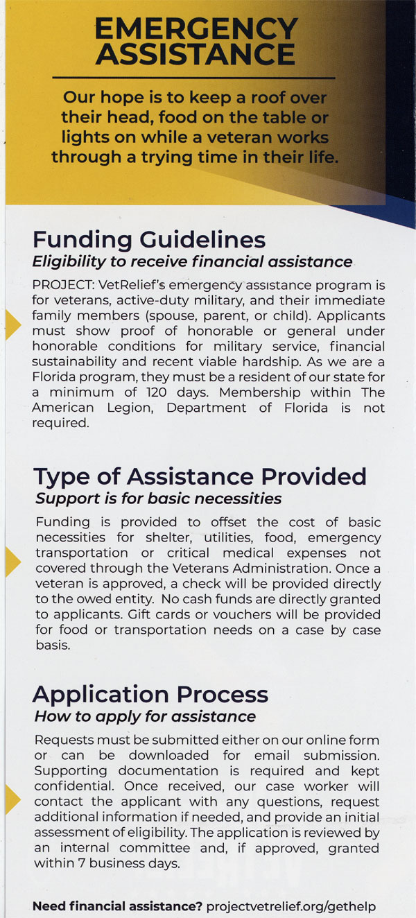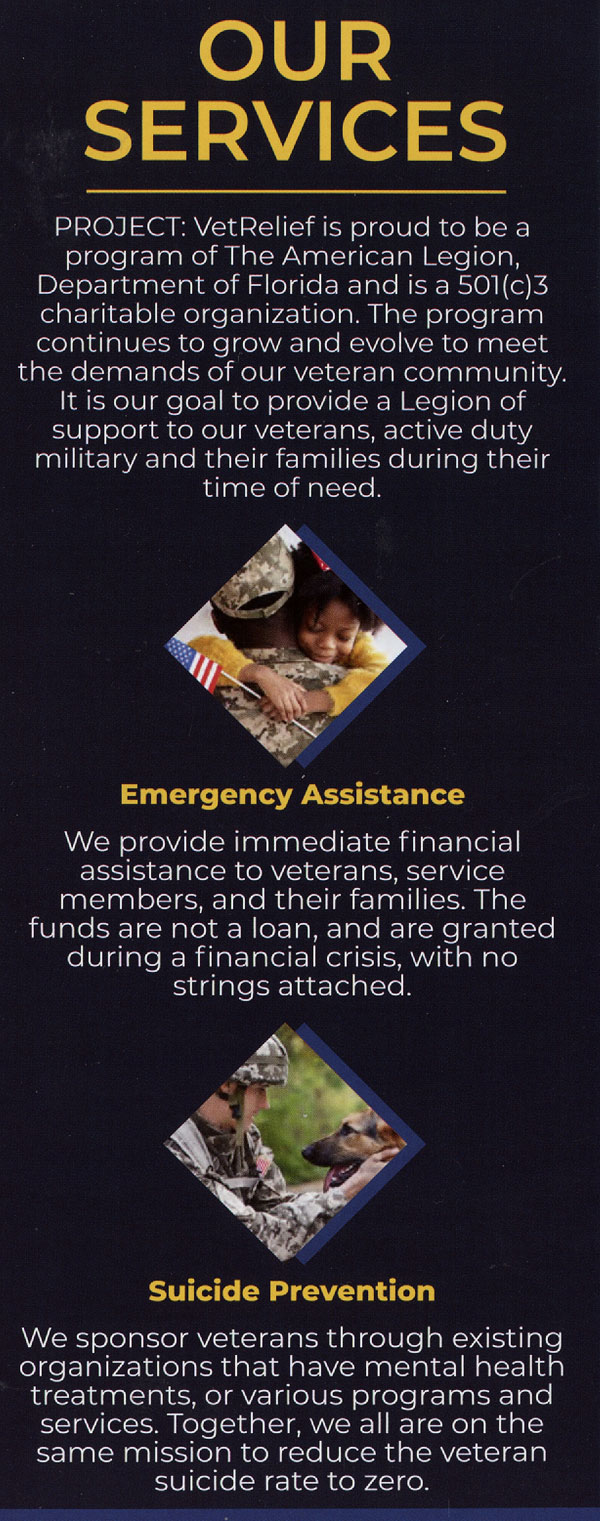 Here is the PROJECT: VetRelief.org brochure…