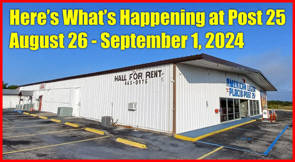 Here’s what’s happening this week, August 26 to September 1, 2024, at American Legion Post 25, in beautiful Lake Placid, Florida!