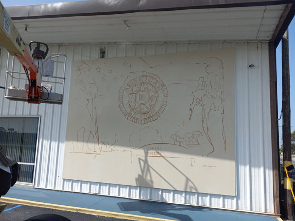 Below are progress photos of the mural that started on 8-21-23. This is going to be SPECTACULAR when completed! We invite you to visit Keith Goodson’s Facebook page with dozens of photos of murals he has painted. Click HERE!