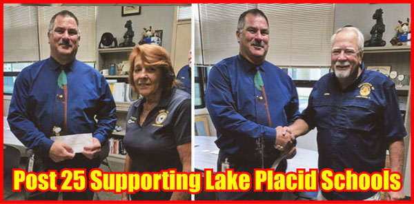 Last week, SONs Commander Jake Gordon and Auxiliary President Patty Bloom donated $1,500, along with dozens of notebook binders and EXPO markers, to Lake Placid Elementary and Middle Schools.