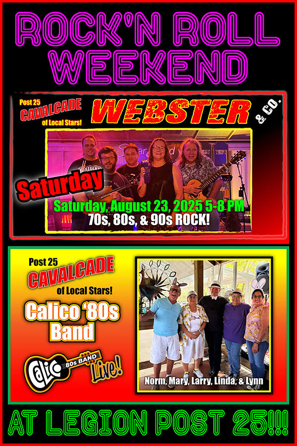 Because of a wedding being held at the post, Roadkill will be held on the Second Saturday (not the third) this month – September 13, 2025, 3-5 PM.