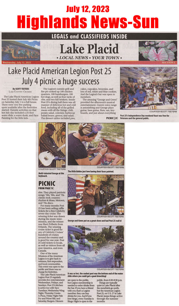 To read a LARGER version of the July 12, 2023 story in the Highlands News-Sun Newspaper, just click HERE to open a larger version. Then, move the cursor over the image, and the cursor will change to a magnifying glass (
