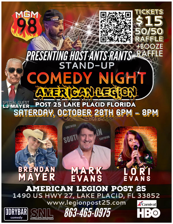 Greetings! There’s been a slight change in the menu for the Saturday night dinner before our Stand-Up Comedy Night and a special offer for ticket buyers.