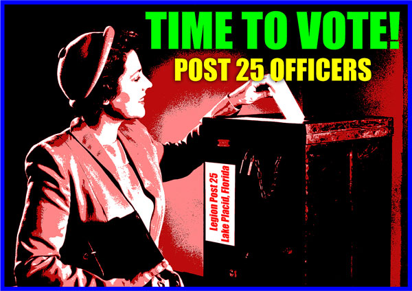 In addition to our regularly scheduled Monthly Auxiliary Meeting on February 8th at 5:pm it is time again for our yearly Auxiliary Officer Election for Unit 25. You must have your 2024 membership card to nominate or sign up for a position. And you must be present to accept if nominated.