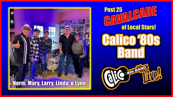 Music: TWO BANDS! Calico from 2 to 5 pm and Randy Sullens from 5 to 8 PM.